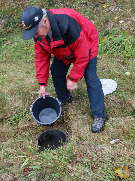 In die Rohre passen die Sammelbehälter für Amphibien. Die jährlichen, mühevollen Grabarbeiten beim Aufstellen der Schutzzäune im Frühjahr entfallen. Nach der Amphibienwanderung werden die Rohre mit den von der Landesstraßenverwaltung angefertigten Deckeln verschlossen.